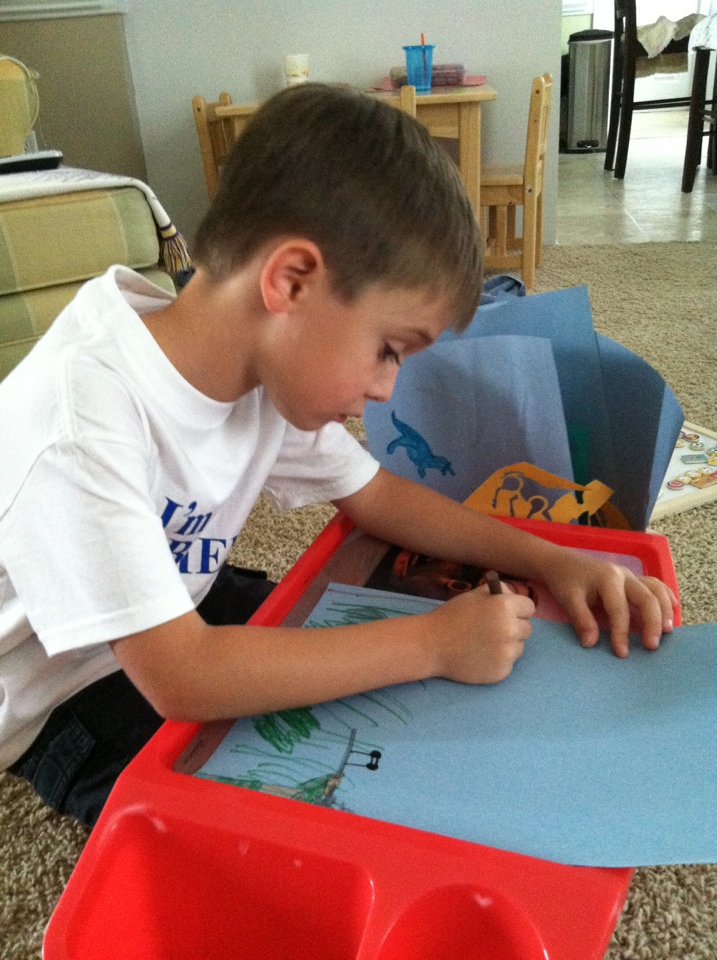 Later that afternoon, while Hallie napped, Davis and I drew and drew and drew some more. He is a very dedicated colorer as you can tell...