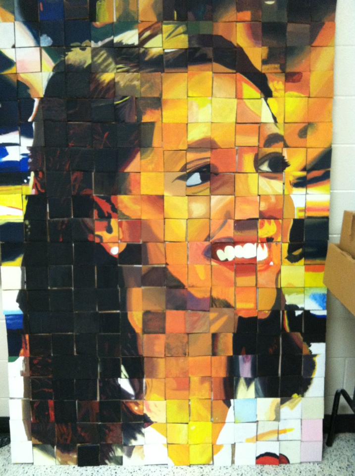 | One of the art classes at SCHS painted this HUGE piece that is now in our library. It looks awesome from a distance, but no one wants to see their face THAT big :) |